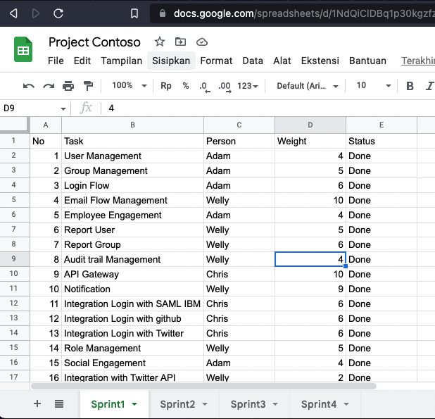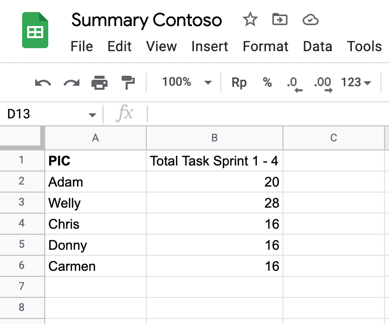 Sometimes we have a situation when numerous reports are scattered, and redundancy happens. For example, in a project management task (if using a traditional method, e.q: collecting assignments in a google sheet with additional weight recorded), a Project owner usually divided assignments within a sprint as a sheet.
