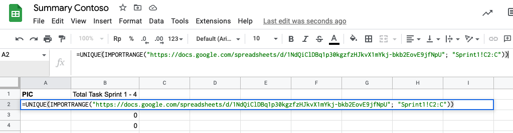 Now you have a summary report from another spreadsheet without copying. When the source spreadsheet is updated, the summary will follow.