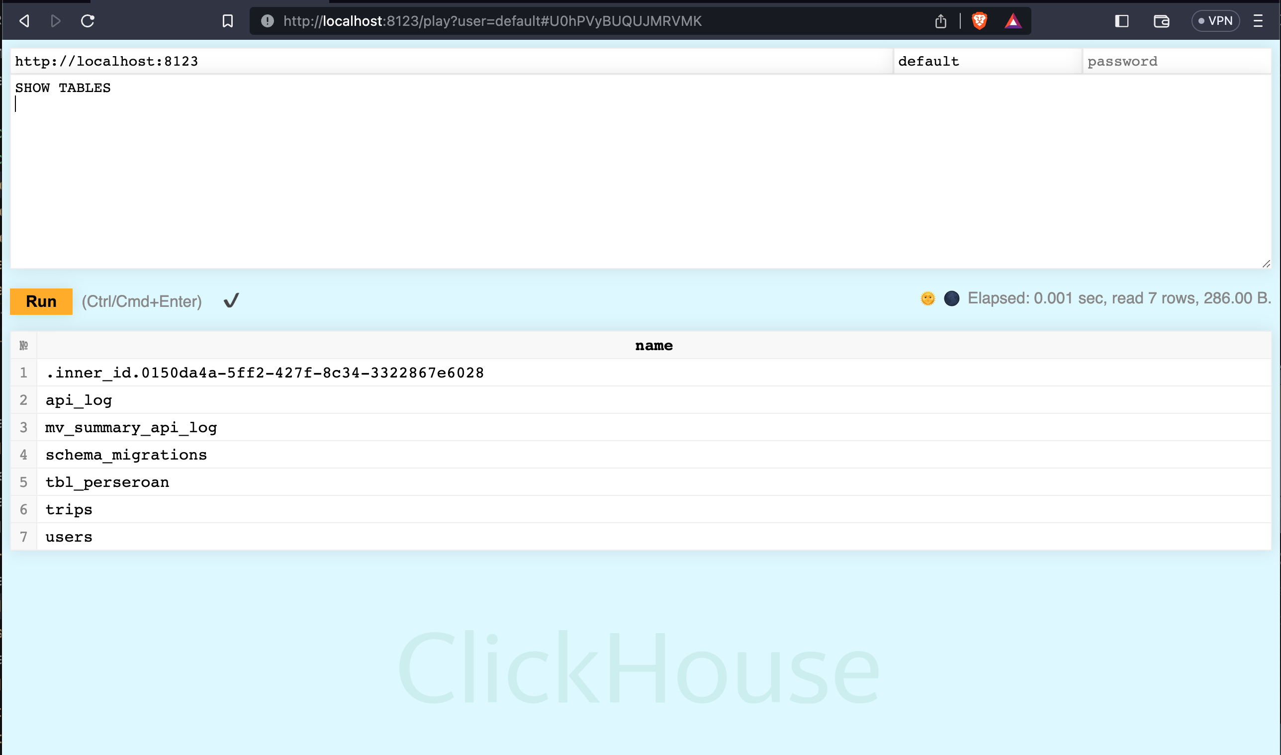 You can connect to ClickHouse using the built-in UI or the ClickHouse client.